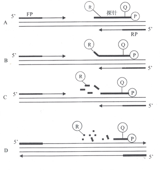 PCR技術(shù)是通過對基因的選擇性片段進(jìn)行體外高效擴(kuò)增,實(shí)現(xiàn)目的基因的檢測。熒光探針定量PCR(FQ-PCR)是一種新的基因定量檢測技術(shù),國外文獻(xiàn)多用“實(shí)時(shí)定量PCR(real time quantitative PCR)”或“TaqMan PCR(以美國PE公司商標(biāo)命名) ”。該技術(shù)是在常規(guī)PCR基礎(chǔ)上加入熒光標(biāo)記探針,巧妙地把核酸擴(kuò)增(PCR)、雜交及光譜技術(shù)結(jié)合在一起,從而實(shí)現(xiàn)了對目的基因的準(zhǔn)確定量檢測,正發(fā)展成為臨床實(shí)驗(yàn)診斷的常規(guī)技術(shù)。