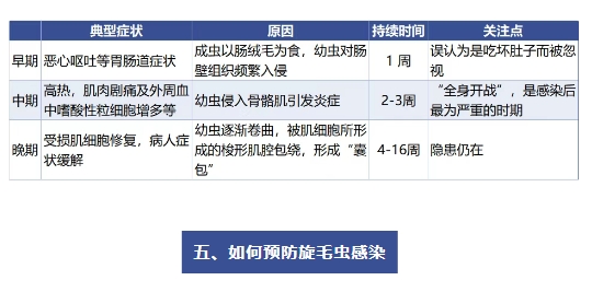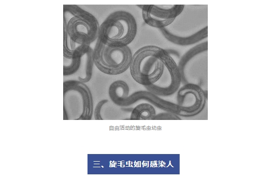 成蟲期:成蟲會(huì)在人體的小腸中停留幾周甚至幾個(gè)月來“產(chǎn)子”(卵胎生)。產(chǎn)出的幼蟲“寶寶”穿透腸壁,隨著血液和淋巴系統(tǒng)擴(kuò)散到全身肌肉中,形成“囊包”。