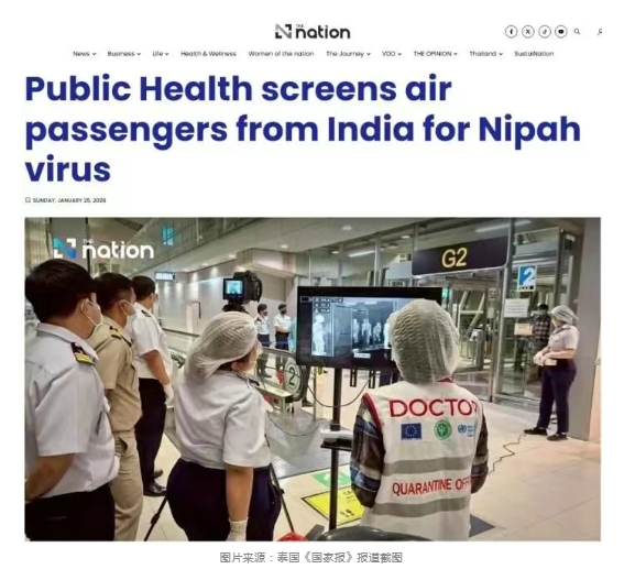 泰國民航局25日發(fā)布聲明稱,26日起對來自印度西孟加拉邦的航班進行全面篩查,以防止尼帕病毒輸入泰國。